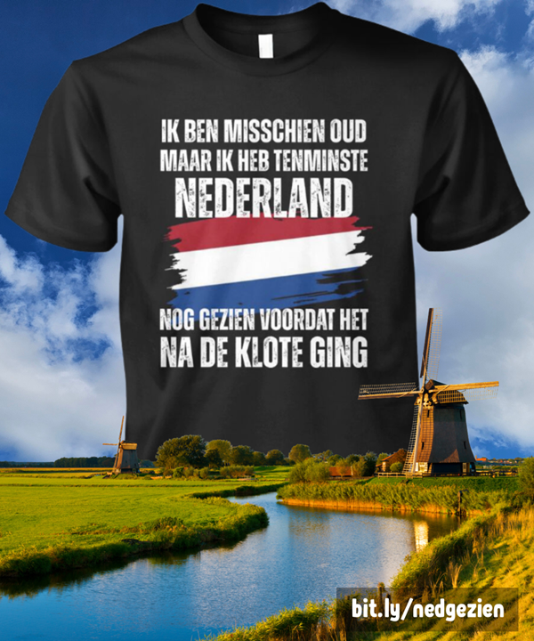 Uniek T-shirt voor de échte Nederlander! Draag je mening met trots: "Ik ben misschien oud, maar ik heb Nederland nog gezien voordat het na de klote ging". Perfect cadeau!